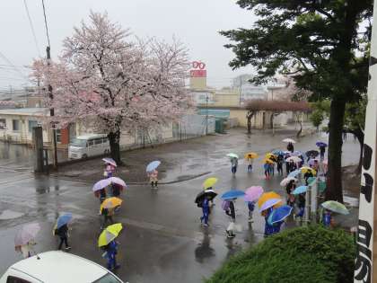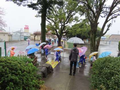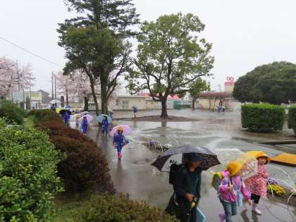 4月9日(火)元気に登校 公開日 2024/05/20 更新日 2024/05/20 できごと(2024) あいにくの雨の中ですが、雨音や校長先生のあいさつに負けないくらい元気な声で「おはようございます!」児童の声が響いていました。1年生は初めての登校班での登校でしたが、6年生を中心とした上級生が優しく付き添ってくれ、皆安全に登校することができました。また、保護者の皆様、地域の皆様の見守りに感謝しております。ありがとうございます。