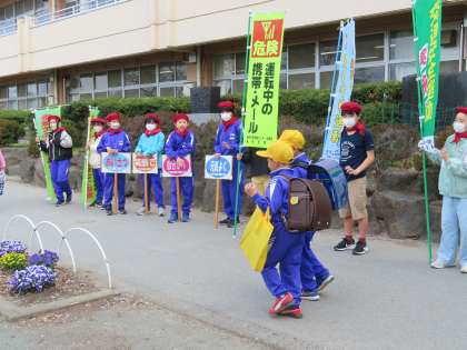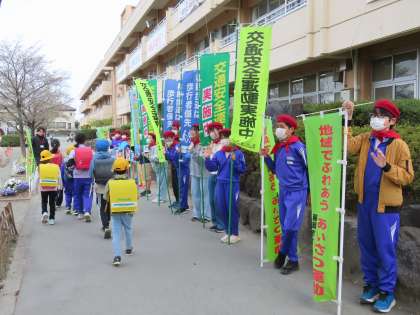 4月12日(金)交通少年団によるあいさつ運動 1 公開日 2024/05/20 更新日 2024/05/20 できごと(2024) 今朝、交通少年団による挨拶運動を実施しました。6年生の交通少年団の児童が外で元気に挨拶と交通安全の呼びかけをしました。この児童たちは自らすすんで「やります!」と手を挙げた児童です。友達のため、地域のためにと尽力しようとするその姿が頼もしいです。