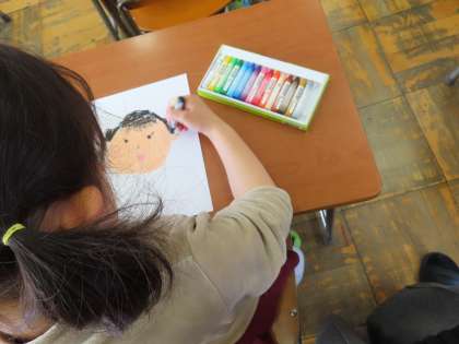 4月12日(金)1年生 図工 公開日 2024/05/20 更新日 2024/05/20 できごと(2024) クレヨンで自分の顔を描いていました。みんなそれぞれ自分の顔を特徴をよくとらえて表現していました。こうして自分の描きたいことを自由に表現する1年生。東連携型小中一貫校の子供の自慢は「かくこと」です。このよさをどんどん伸ばしていきたいと思います。