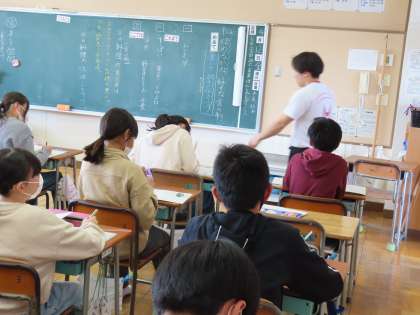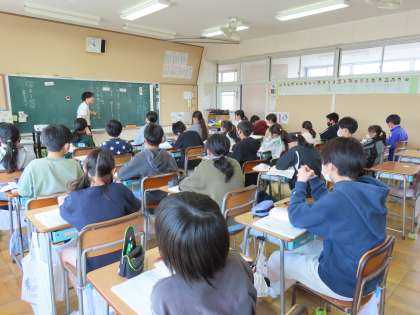 4月12日(金)6年生 国語 公開日 2024/05/20 更新日 2024/05/20 できごと(2024) 「伝わるかな 好きな食べ物」の学習をしています。「ここでは」好きな食べ物の名前を出さずにその食べ物を伝える文章を書き、友達に伝えます。わくわくする学習課題なので、皆真剣に、どう表現しようか?考えていました。そして友達と交流して、友達からいろいろな表現の仕方の工夫を学んでいきます。