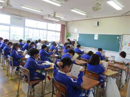 4月15日(月)朝読書 公開日 2024/05/20 更新日 2024/05/20 できごと(2024) 1週間のはじまりは「朝読書」です。担任の先生も一緒に本を読んでいました。なかには、担任の先生による読み聞かせを楽しむクラスもありました。 東一貫校では、こうしてみんなで一緒に読書をする時間を大切にしていきます。また、各ご家庭でも家族みんなで本に親しむ時間をつくっていただければと思います。