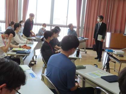 説明会後、校長先生からお話をしていただきました。その中である若手職員が、今日の研修を受けて、自分自身の授業に関する課題を話し始めました。よりよい授業にしていきたい!という思いがあるからこそです。職員全員が、明日からの授業をさらに頑張ろう!という気持ちになりました。