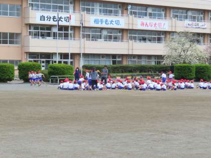 4月17日(水)3年生 合同体育 公開日 2024/05/20 更新日 2024/05/20 できごと(2024) 3年生全員の一致団結した元気な声が聞こえてきました。進級して間もないのですが、みんなで心をひとつにやる気を高めて頑張っている3年生の姿を見て素晴らしい!と思いました。友達が一生懸命応援してくれるから、最後まで頑張って走りきることができました。