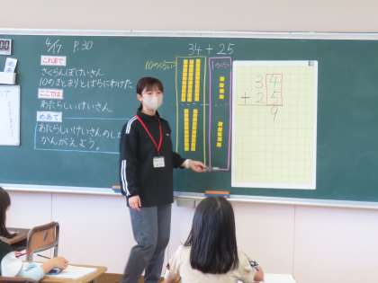 4月17日(水)2年生 算数 公開日 2024/05/20 更新日 2024/05/20 できごと(2024) 34+25の計算をどうやったらできるか?「これまで」さくらんぼけいさんなどの計算の仕方からさらに進んで、今日のめあては「あたらしいけいさんのしかたをかんがえよう」です。先生から教えてもらう計算の仕方ではなく、まずは自分で考えて見いだします。それが算数の楽しさにつながります。