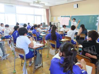 「帰り道」という物語を読んでの学習が始まりました。私(教頭)は読んだことがない物語なので気になって授業を見ていたところ、児童の発言から「ここでは」の学習の面白さが分かりました。2人の登場人物の視点の違いを楽しみながら読むそうです。6年生は、ますます読むことが好きになることでしょう。