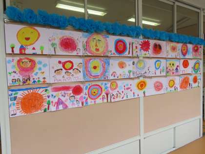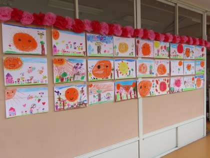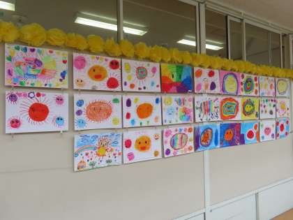 4月18日(木)1年生 図工「わたしの おひさま」作品 公開日 2024/05/20 更新日 2024/05/20 できごと(2024) 1年生の明るくて元気な「わたしのおひさま」です。見ているこちらまで元気になる作品です。いつも「おひさま」のように輝いている1年生らしい作品です。