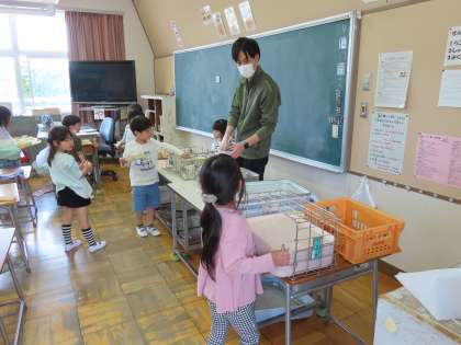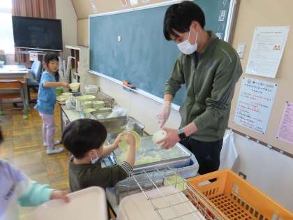 今週は6年生のおにいさん、おねえさんの力をかりなくても自分たちで準備、片付けができるようになりました。今日もおいしい給食を食べた後、しっかり先生と一緒に片付けができました。来週の成長も楽しみですね。