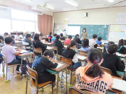 「銀色の裏地」を読んで学習しています。今日はある登場人物の心情を考えるために、人物同士の関係を図にしていました。5年生にとっては初めての学習方法なのではないかと思います。課題を解決するためにいろいろな手立てがあることもこうして学んでいくのだと思いました。