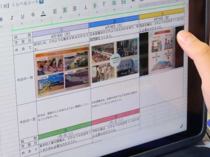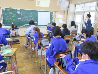 「国民主権」について学習しています。学習が進むにつれ、自分たちの生活と憲法、政治とのつながりについて考えを深めています。ちょうど教室では、今日のめあてを達成するために、自分にとって一番考えた資料を視聴していました。一人一人ちがいます。そして毎時間取り組んでいるシートに「今日の一枚」をのせ、振り返りをしていました。タブレットを上手に活用して学習を進め、学んできたことを積み重ね、このあとの学習に生かします。