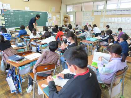 4月22日(月)3年生 理科 公開日 2024/05/20 更新日 2024/05/20 できごと(2024) 「春の生き物をさがしてみよう」ちょうど教室では、見つけた生き物の色、形、大きさについて友達と発表し合った後、似ているところや違うところなど気付いたことをまとめていました。私たちの身の回りにはいろいろな生き物がいて、それぞれ色や形、大きさなどが違うことに気付きます。この春に、どんな生き物を見付けたかな?