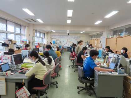 この日の放課後、職員が集まり研修を行いました。今年度一年間、本校だけでなく、東連携型小中一貫校の全職員が一丸となって、子供たちの学力向上を目指していくことの確認をしました。