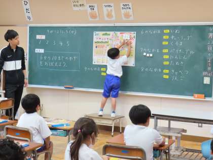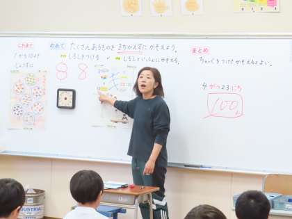 4月23日(火)1年生 算数 公開日 2024/05/20 更新日 2024/05/20 できごと(2024) 1年生では、もうすでに1から10までの数を数えて数字を正しく書くことができるようになりました。学校での学習はもちろんですが、日常生活の中で数を数えたり、数字を書いたりして「がっこうで おべんきょうしてきて よかったな」という嬉しい思いをたくさんたくさん味わってほしいです。