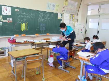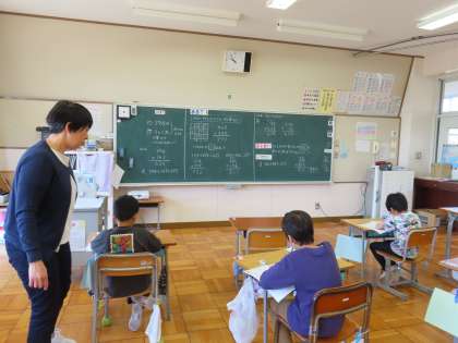 4月26日(金)わかくさ学級 公開日 2024/05/20 更新日 2024/05/20 できごと(2024) 3クラスとも算数の学習に一生懸命取り組んでいました。3桁どうしの足し算を学習していた3年生の児童は難しい問題にも挑戦しており、驚きました。「わかった!」「できた!」がやる気を生み、さらに力をつけていきます。