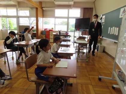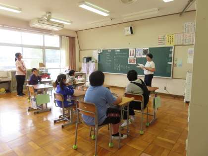 わかくさ学級です。どの学級もいつでも落ち着いて先生の話を聞き、一生懸命学ぼうとする日々の様子を保護者の方々にもよく見ていただき、よかったです。