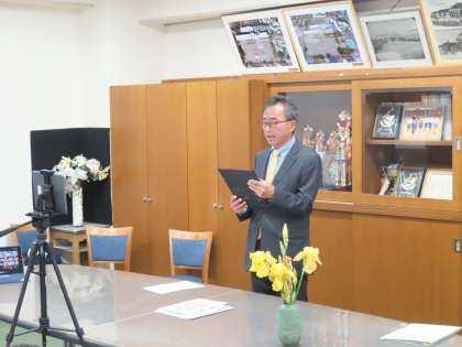 4月26日(金)授業参観 学級懇談会1 公開日 2024/05/20 更新日 2024/05/20 できごと(2024) 授業参観の後、保護者の皆様には教室に残っていただき、学級懇談会を実施しました。冒頭に、オンラインで、学校運営協議会長、PTA会長よりご挨拶をいただきました。またPTA運営委員の皆様を紹介させていただきました。短時間でしたが、学校、家庭、地域が一体となって子供たちのために協働を進めていきましょう!ということを保護者の方々に伝えさせていただきました。