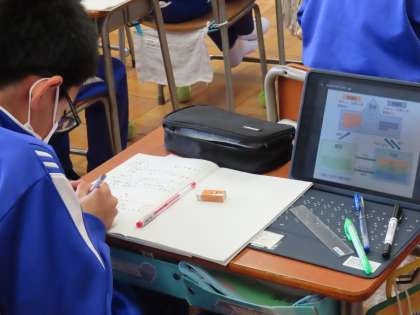 内閣の働きについて考えていました。「ここでは」内閣は国会で決められた法律や予算にもとづいて国民のために仕事を行っていることを学びます。「そういえば、自分たちの学校における委員会や児童会の取組も・・・」範囲は違いますが、自分たちのことと重ねて考えていました。一人一人が大事なこと、みんなで決めたことを大事にすること。6年生も政治のことについて考え始めています。
