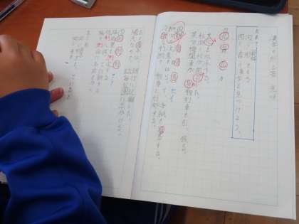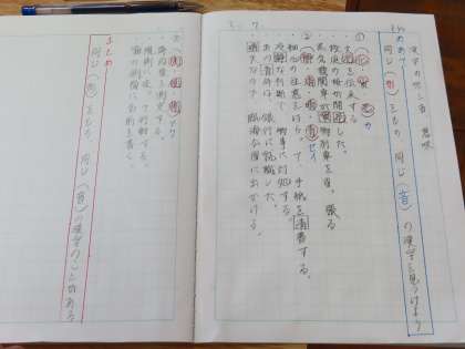 5月7日(火)6年生 国語 公開日 2024/05/20 更新日 2024/05/20 できごと(2024) 「漢字の形と音・意味」を学習中でした。「ここでは」同じ部分をもつ漢字は音も共通していたり、意味のうえでつながりがあったりする場合があることに気付きました。漢字を学習することの面白さです。そして6年生のノートがとても丁寧できれいなのには感心しました。