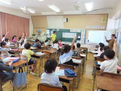 5月10日(金)4年生 外国語活動 公開日 2024/05/20 更新日 2024/05/20 できごと(2024) 「Unit 2 Let's play cards.」です。「ここでは」天気や遊びに関する言い方を知り、それを使って友達と楽しくやり取りします。教室では、英語を聞いて、聞き取れた言葉を出し合っていました。大切な英語をキャッチしてどんなことを言っているのかを類推しようとする児童の姿を見て嬉しく思いました。