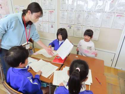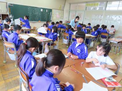 5月13日(月)2年生 国語 公開日 2024/05/20 更新日 2024/05/20 できごと(2024) 「日記を書こう」の学習です。今日は、友達と自分の書いた日記を読み合っていました。そして友達に自分の感想をおくります。ただの感想ではなくて、友達が一生懸命考えて書いた日記から様子がよく伝わったことを教えてあげます。「このあとは」ますます友達や誰かに伝えたいな!と思う気持ちが強くなっていくことと思います。