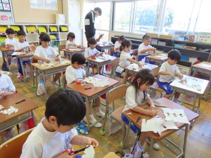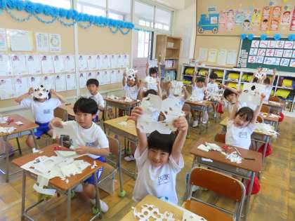 5月14日(火)1年生 図工 公開日 2024/05/20 更新日 2024/05/20 できごと(2024) 「ちょきちょき かざり」です。「ここでは」はさみを使っていろいろな形を作って楽しみます。どんなかたちができるかな?と考えてはさみを入れるのが楽しそうでした。まずは不要になったプリントなどを使って練習していました。