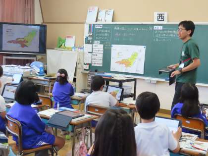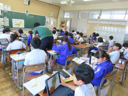 「ここでは」藤岡市のことをさらに知ることができます。ちょうど教室では、藤岡市の土地の高さ、土地の使われ方に関する2つの資料を見て、どんなことが分かるか?をノートに書いていました。さらに交通のことなどもこのあと学習し、藤岡市のことをどんどん好きになることでしょう。