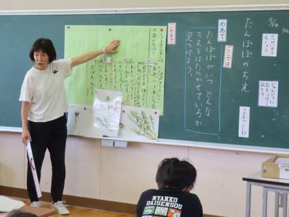 「たんぽぽのちえ」を学習しています。今日はたんぽぽが、いつ、どんなちえをはたらかせているのか?読み取っていました。特に、「ときをあらわすことば」に着目して読んでいました。「ここでは」順序がわかる言葉を知り、順序に気を付けて読むことができるようになります。