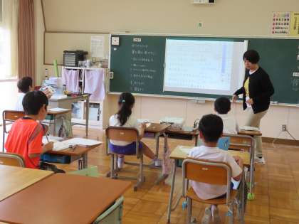 3年生は算数の学習で問題を解いていました。「今日やったことをつかえばできるよ!」と自信たっぷり大きな声が廊下にまで聞こえてきました。授業で一生懸命頑張って考えて、よかったな!という気持ちが、また次のやる気につながっていくのですね。