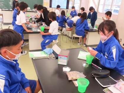 「種子の発芽と成長」の学習です。「ここでは」発芽に必要なものはなにか?変える条件と変えない条件を考えての実験を通して学習します。問いをもち、予想をし、実験計画をたてました。そして、自分の予想があたっているか?学習したい!意欲も高まる5年生でした。
