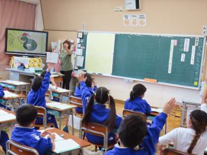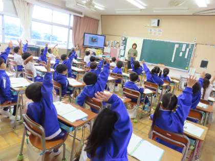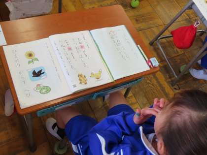 5月16日(木)1年生 国語 公開日 2024/05/20 更新日 2024/05/20 できごと(2024) 「ぶんを つくろう」の学習中です。ひらがなが書けるようになったので、いよいよ「ここでは」文をつくることができるようになります。文は「だれ(なに)が、どうする」の形であること、文の終わりにまるをつけることをよく分かっています。