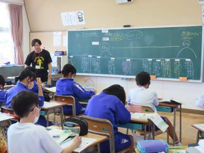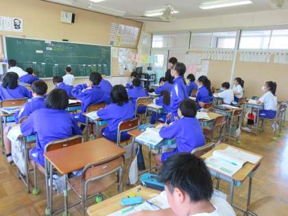 「松井さんのえがお」を通して、感謝について考えていました。この話を通して考えたことを自分自身とつなげて考えます。6年生にもなると、自分の日々の生活だけでなく、さらに広い範囲に目を向け尊敬や感謝の気持ちをもったり、さらに自分には何ができるのかを考え実践できるようになります。