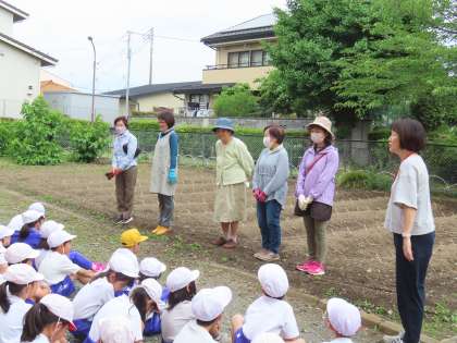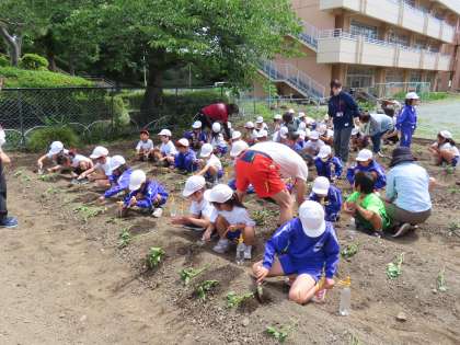 5月22日(水)2年生 生活科(東クローバー) 公開日 2024/05/22 更新日 2024/05/22 できごと(2024) 本日、婦人会のボランティアの皆様に大変お世話になり、2年生は、さつまいもの栽培が始まりました。先日はきれいに畑を耕していただいたことをこのHPで紹介しましたが、こうしてボランティアの方々のおかげで子供たちの学習が充実していることに感謝申しあげます。