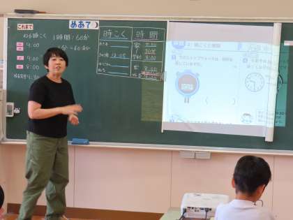 5月22日(水)わかくさ学級 公開日 2024/05/22 更新日 2024/05/22 できごと(2024) 3年生が算数で「時こくと時間」を学習していました。「これまで」2年生で学習したことがよく身に付いて、先生がとても誉めていました。こうして児童が誉められている授業を見ていると嬉しくなります。教室にいる児童はもっと嬉しいでしょうね。