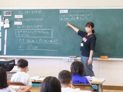 5月22日(水)2年生 算数 公開日 2024/05/22 更新日 2024/05/22 できごと(2024) 「長さのたんい」の学習をしています。1cm、1mmについて理解します。今日は参観した2学級とも、1cmより短い長さはどうなっているのかな?と自分の持っている定規を見つめていました。身の周りのものの長さを測ったり、比べたりすることができるようになります。