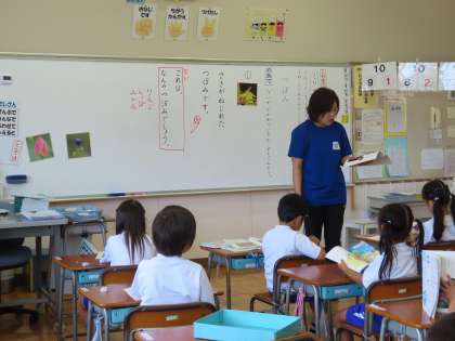 「つぼみ」を学習しています。「ここでは」どんなことがかかれているかな?「これは なんの つぼみでしょう」と、「とい」がある文を「しりたいな!」「よんでみたいな!」とワクワクして読んでいました。ページをめくって出てきた朝顔の花の写真に「きれい!」と声があがりました。素直で美しい心の1年生が、読むことの楽しさをたくさん味わっています。