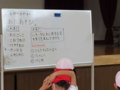 6月6日(木)1年生 体育 公開日 2024/06/06 更新日 2024/06/06 できごと(2024) 体育館で元気に「しっぽとり」をしていました。途中で先生がほめていました。「うんどうのやくそく」がしっかり守れていること、上手に逃げられるように体の動きを工夫している友達がいること。回数を重ねるごとに上手になっていき、どんどんおもしろくなって笑顔がたくさん見られました。