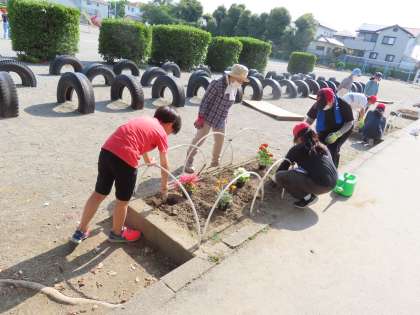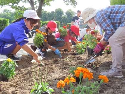 6月6日(木)緑の少年団と婦人会の皆様 公開日 2024/06/07 更新日 2024/06/07 できごと(2024) この日、緑の少年団の児童は、婦人会の方々にお世話になり、たくさんのきれいな花々を学校に植えました。児童はこの活動を以前より楽しみにしていました。どうやって植えようかなと植える位置などを考え、婦人会の皆様のアドバイスをいただいてきれいな花壇ができあがりました。婦人会の皆様、いつもありがとうございます。