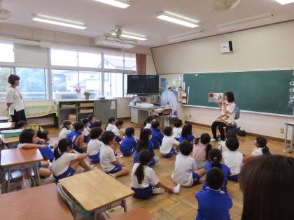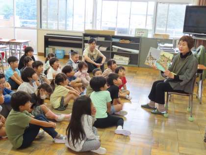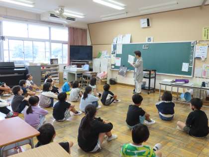 6月10日(月)読み語り 公開日 2024/06/10 更新日 2024/06/10 できごと(2024) 今朝は、わかくさ学級と1〜3年生の各学級で、東クローバーの皆様に読み聞かせを行っていただきました。「しってる!としょしつでよんだよ!」との声も聞かれました。また、こうして読んでいただいた本を今度は自分が図書室で手に取って読みたいなと思った児童もいたことでしょう。