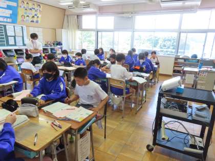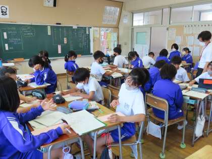 「たのしみは」の学習中です。「ここでは」表現を工夫して短歌をつくってよみあいます。江戸時代の歌人、橘 曙覧にならっての短歌作りです。短い歌のなかに、たのしさが伝わるような言葉をどう選んでよむのか、悩んでいました。作品の仕上がりが楽しみです。
