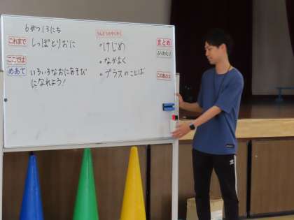 6月13日(木)1年生 体育 公開日 2024/06/13 更新日 2024/06/13 できごと(2024) 今日も、しっぽとりおにをしました。いつもと違って少しレベルアップした課題が出されていたようです。そして、大切な「うんどうのやくそく」も大切にして学習を進めました。「ぷらすのことば」友達の温かい励ましの言葉がさらに1年生のやる気を奮い立たせてくれるものですね。