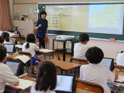 「わたしたちの群馬県」についての学習が始まりました。タブレット上の地図を拡大したり、縮小して全体を見たりしながら考えていました。地図帳をじっくりながめていろいろな気付きが生まれる楽しさを味わっていました。