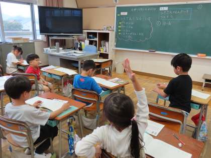 6月18日(火)1年生 算数 2 公開日 2024/06/18 更新日 2024/06/18 できごと(2024) 2組の様子です。「ひきざんになることば」をヒントにして、どんどん問題作りにチャレンジしています。「できました!」と姿勢よくピーンと手を挙げて、先生にみてもらっています。言いたいことはちゃんと先生に伝わっていたようでよかったです。