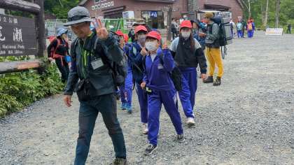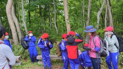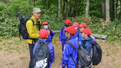 ガイドさんと「ここでは何を学ぶのか」を確認し、荷物を整理したり準備体操をして出発しました!