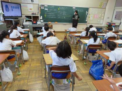 6月21日(金)2年生 算数 公開日 2024/06/21 更新日 2024/06/21 できごと(2024) 「かさのたんい」の学習に入りました。今日は、かさの表し方を知りました。水筒やペットボトル、牛乳やジュースなどなど、生活の中で毎日必ずといってもいいくらい手にする物のことをよく知ることができるようになっています。おうちでお手伝いするときも、家族と一緒にお買い物するときも、「ここでは」の学習が大活躍するといいですね!