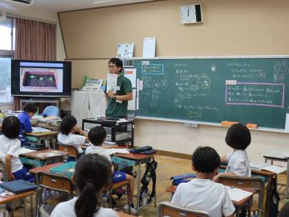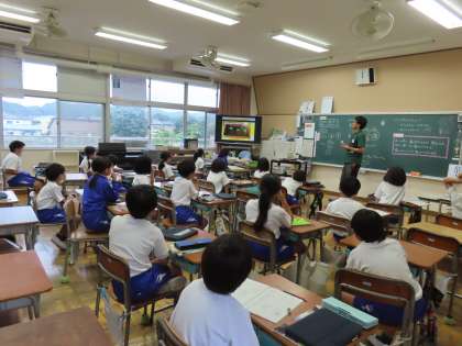 「植物を育てよう2 どれぐらい育ったかな」の学習では、今一生懸命育てているホウセンカについて、その育ち方とからだのつくりを調べています。「ここでは」植物のからだは葉、茎、根からできていること、根は茎の下についていることを学びます。そしてどんどん、他の植物のことも調べたくなっています。先生が夏休みの自由研究のことを話題にすると、大喜びでした。