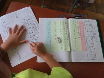 6月25日(火)2年生 国語 公開日 2024/06/25 更新日 2024/06/25 できごと(2024) 「こんな もの、見つけたよ」の学習中です。ちょうど教室では、はじめ・中・おわりの組立で、何をどの順に書くのか、これまで一生懸命考えてきたメモをもとに組立をたしかめていました。「しらせたいな!」と思ってからずっと文の組立を考えてきました。考えれば考えるほど、書けば書くほど、「つたえたいな!」という思いが膨らんでいるようです。
