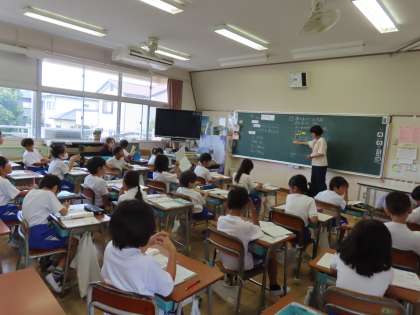 6月27日(木)2年生 算数 公開日 2024/06/27 更新日 2024/06/27 できごと(2024) 1組と3組の様子です。「かさのたんい」の学習で、かさの計算の仕方を考えていました。計算がバッチリなのは言うまでもありませんが、どうしてそう考えるのか?をよく説明できます。L、dL同じ単位のものどうしで計算することがよくわかっているのは、「これまで」「長さのときも おんなじだった!」と思い出したからです。