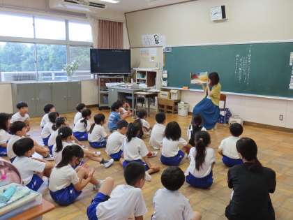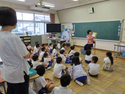 7月1日(月)読み語り(東クローバー)2年生 公開日 2024/07/01 更新日 2024/07/01 できごと(2024) 先生も一緒に楽しんでいます。2年生の教室も楽しそう!お話の光景を頭に想像しながらきいていました。