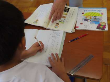 3組では3年生が国語「本は友だち」を学習しています。「ここでは」本の読み方について考えたり、自分で選んで読んだ本について紹介したりして、より一層読書に親しみます。児童が選んだ本は「チョコレートだいすき!」です。あとでゆっくり紹介してもらおうと思います!」
