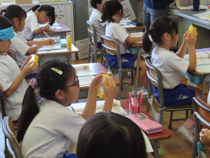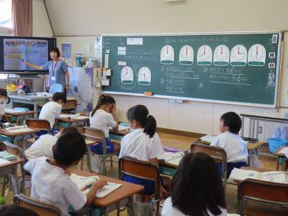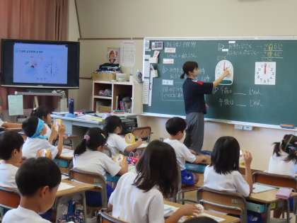7月5日(金)2年生 算数 公開日 2024/07/05 更新日 2024/07/05 できごと(2024) 2時間目に1組と2組が算数で「時こくと時間」を学習していました。「ここでは」の学習を通して1日の時刻と時間を表すことができるようになります。これから楽しみな夏休みの計画も、ここでの学習をもとにして、時間の使い方をよく考えて立てることができるでしょうか。どんどん時間が上手に使えるようになりますね。