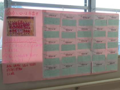 7月16日(火)6年生 マーチングへの思い 公開日 2024/07/16 更新日 2024/07/16 できごと(2024) 今年度のマーチングテーマは「ほほえみ」です。一人一人の思いが6年生廊下に掲示されています。この「ほほえみ」に込められた6年生全体の思いは、当日パレードのなかで発表しますので、こちらもまたパレード同様、お楽しみに!